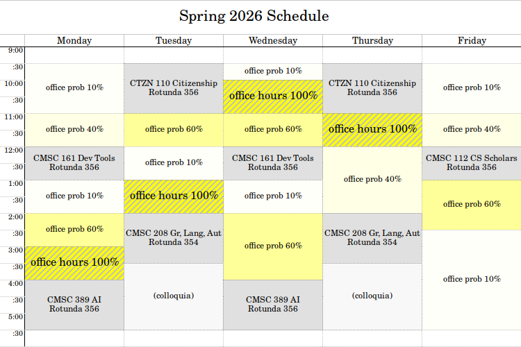Spring 2026 100% office hours: Mondays 3-4pm; Tuesdays 1-2pm; Wednesdays 10-11am; Thursdays 11am-noon